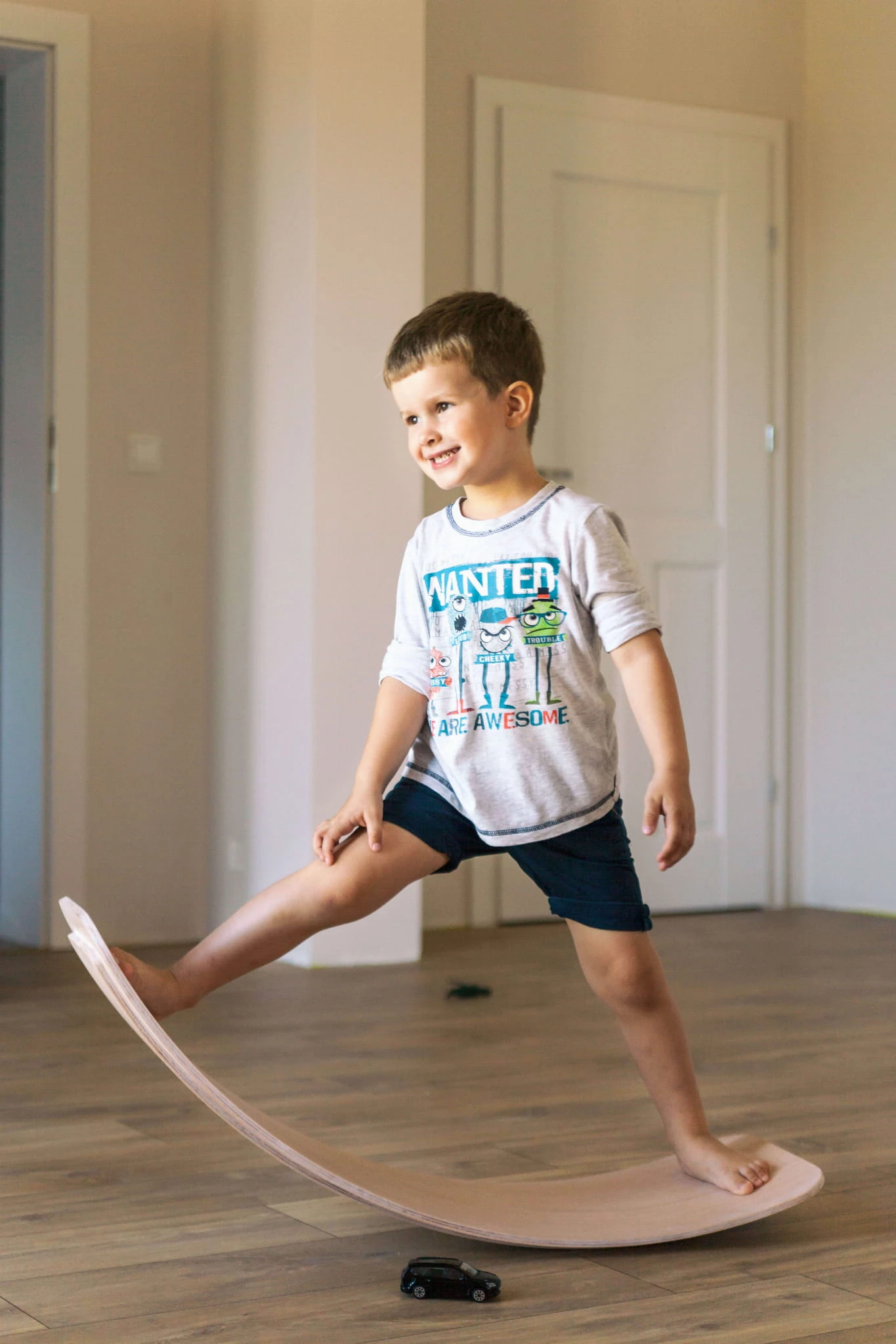 Niewielki rozmiar oraz niezliczone warianty zastosowania w zabawie czynią deskę miniaturowym placem zabaw- może być zjeżdżalnią, tunelem, łodzią, bujakiem, biegunem do balansowania czy mostem. Jedyne co ją ogranicza to nasza wyobraźnia. Tworzy warunki do trenowania motoryki dużej w domu, jest też świetnym akcesorium do ćwiczeń dla dorosłych.